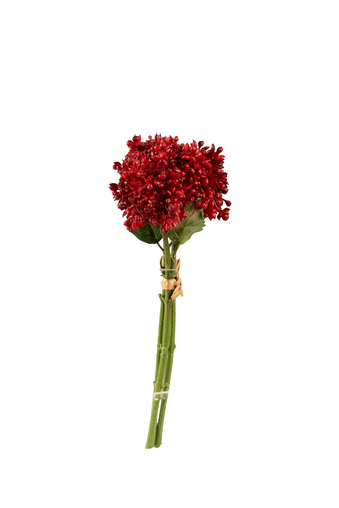 Bold, vivid, and full of tropical fire — the Ruby Flame Ixora Bunch brings a rich, saturated ruby-red to the dense, clustered blooms of this beloved tropical flower. Its compact bunch of tiny florets in a deep ruby tone adds natural drama and botanical intensity to any arrangement. A bold tropical accent of enduring vivid beauty.
