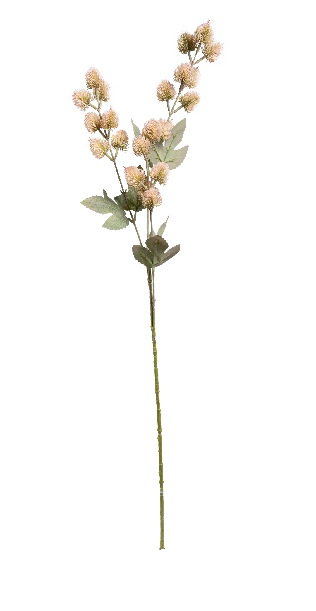 Warm and softly beautiful, the Soft Peach Thistle brings an unexpected gentleness to the architectural form of the thistle. Its spiky bloom head in a warm peach tone creates a delightful contrast between wild form and refined colour. A piece of lasting botanical surprise for the considered interior.